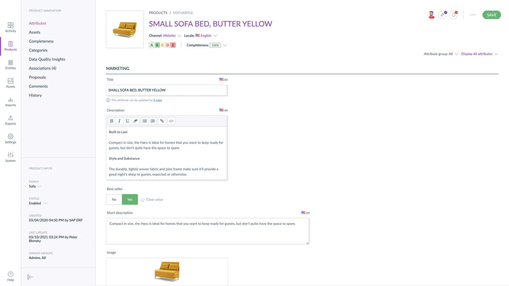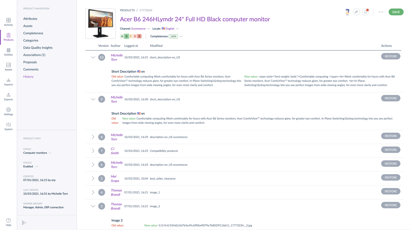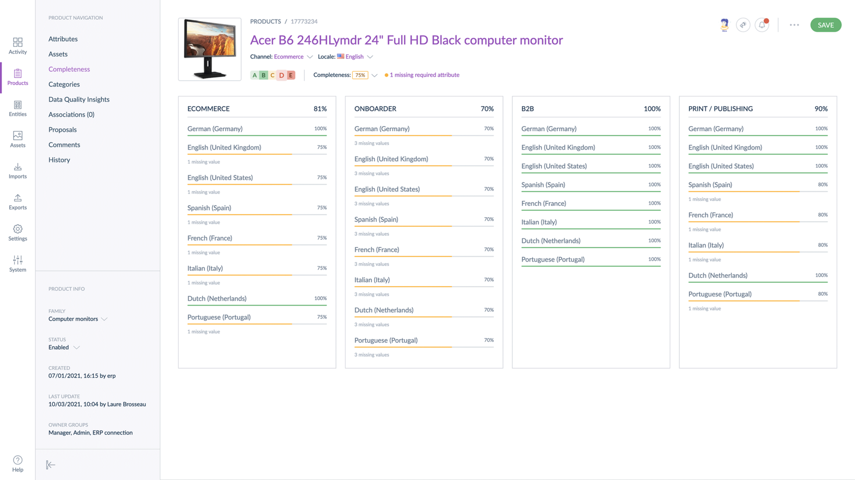 Akeneo PIM предоставляет функции, правила, рабочие процессы и возможности для совместной работы, которые помогут вам легко управлять изменениями контента и отправлять точные и полные данные о ваших товарах своим партнерам.